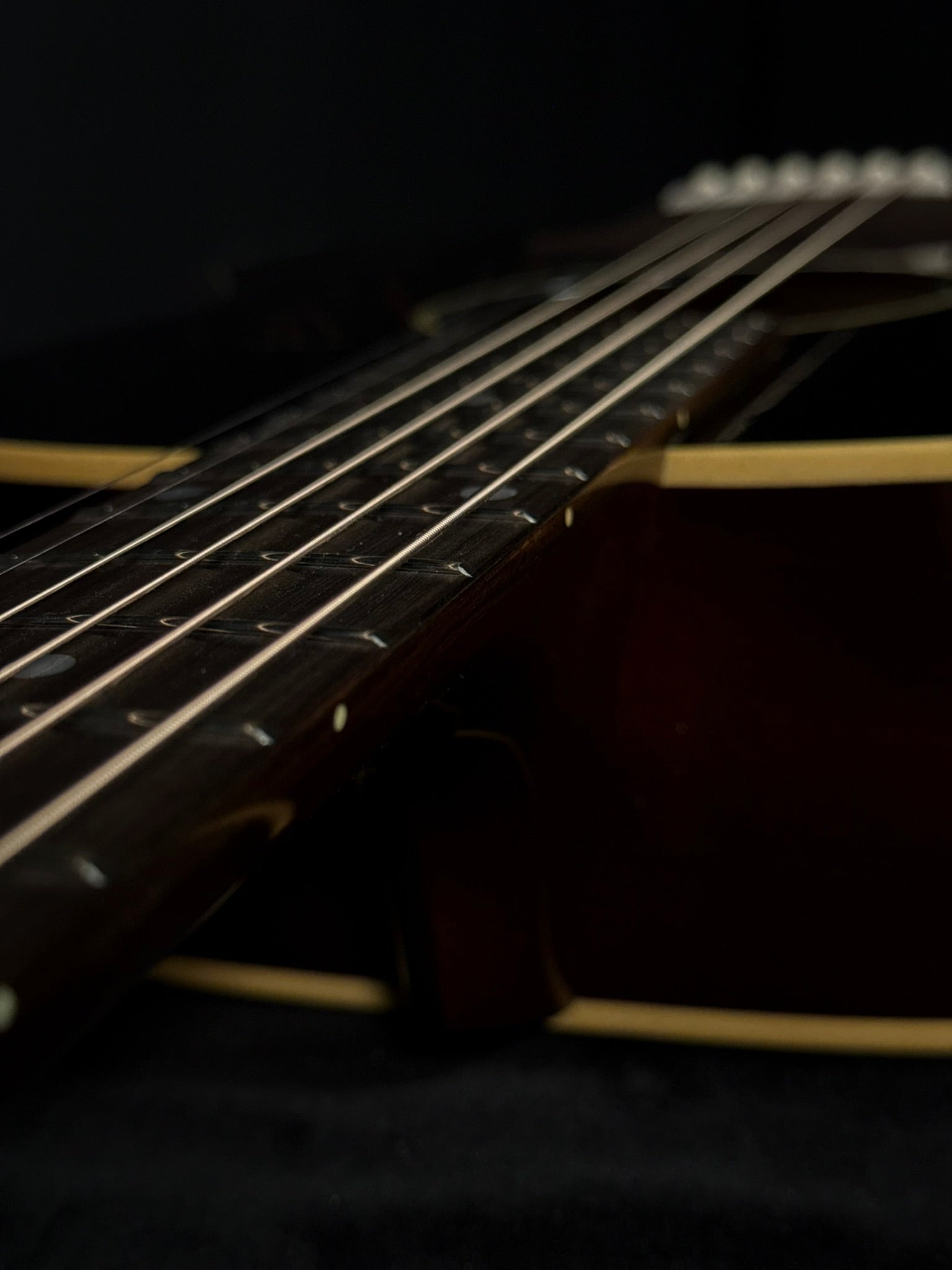 This small body slope shoulder guitar is a fairly new addition to the Atkin line. Released in 2019, this model carries the year as its name. The body width is 15″ across the lower bout with a body depth of 4-7/8″. With a 24.9″ short scale length the Nineteen feels more like a OOO than a J. This guitar has a rich, warm tone perfect for accompanying a singer. It's a classic Sitka and Mahogany combo. The black finish makes this a special guitar! A songwriters dream, this Atkin would look stunning on stage!