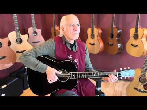 We love Atkin's J-43, and this is a custom version with a baked Sitka top and Rosewood back and sides for a little more low-end punch and note definition than the traditional mahogany model. The bridge and fingerboard are ebony. White neck binding along with diamond shaped abalone inlays on the board and headstock give it a bit of a "tuxedo" flavor. Nut width 1-11/16"; scale length 24-7/8". Bone nut and saddle. A tiger fire pickguard is included in the TKL hard case.