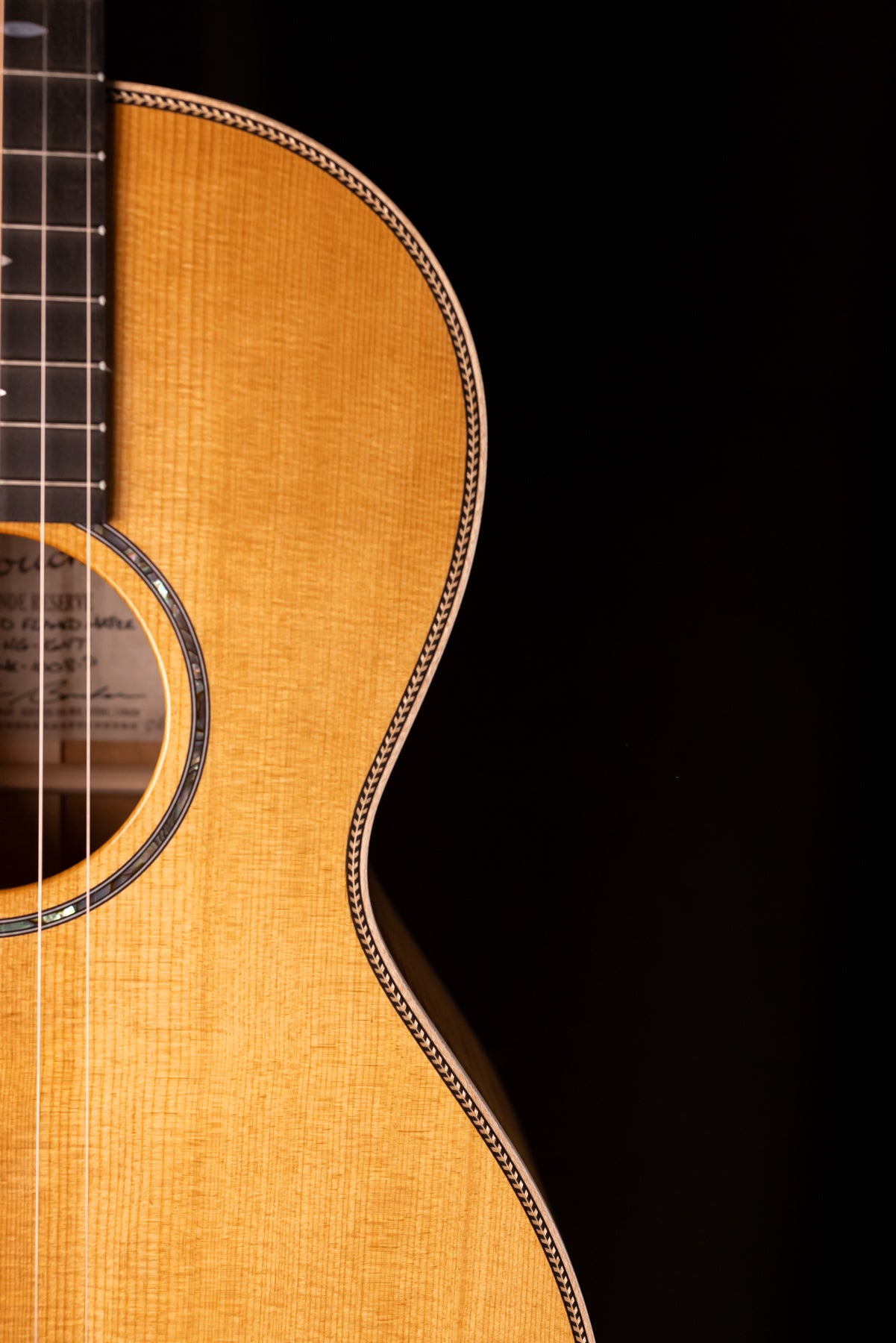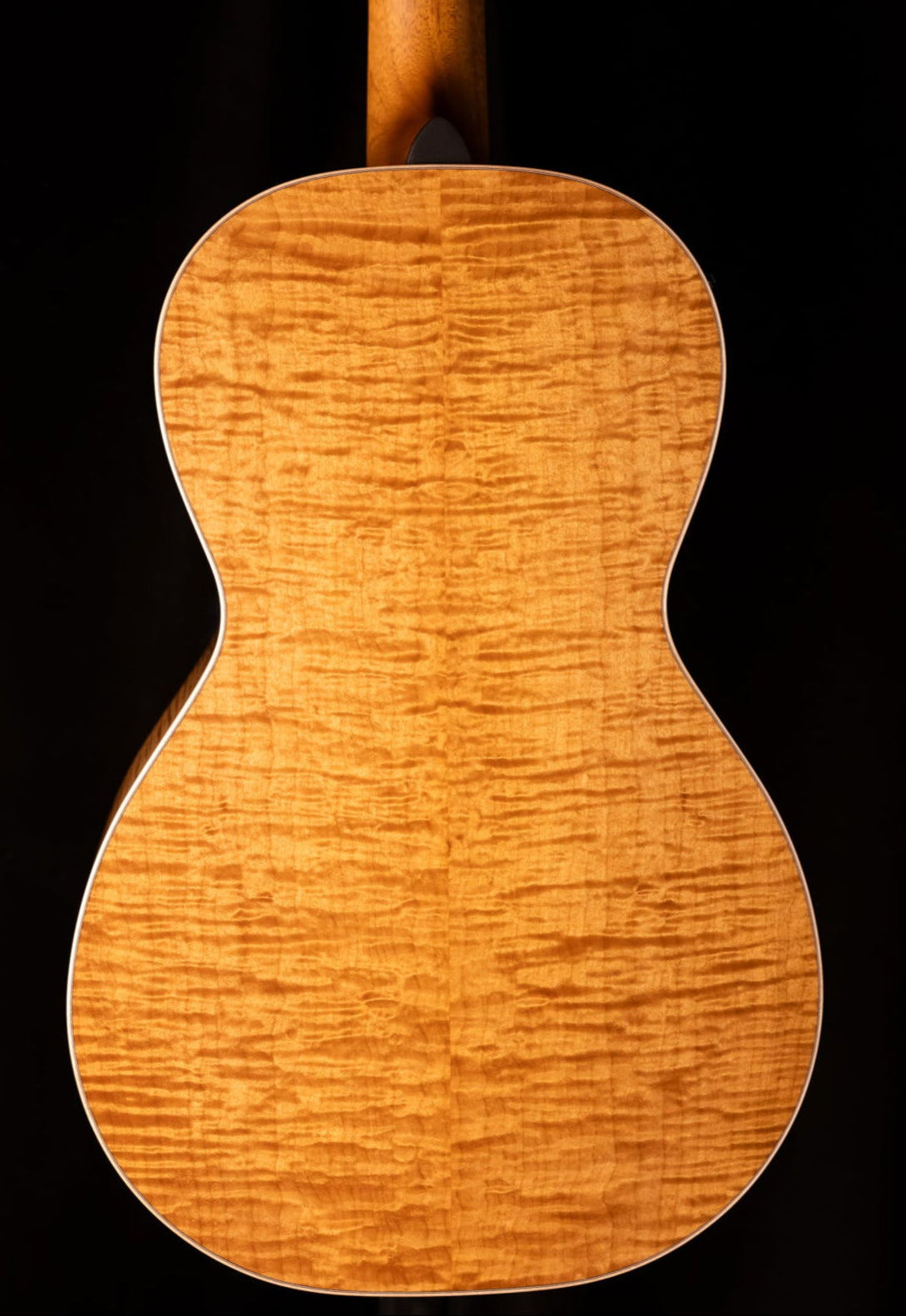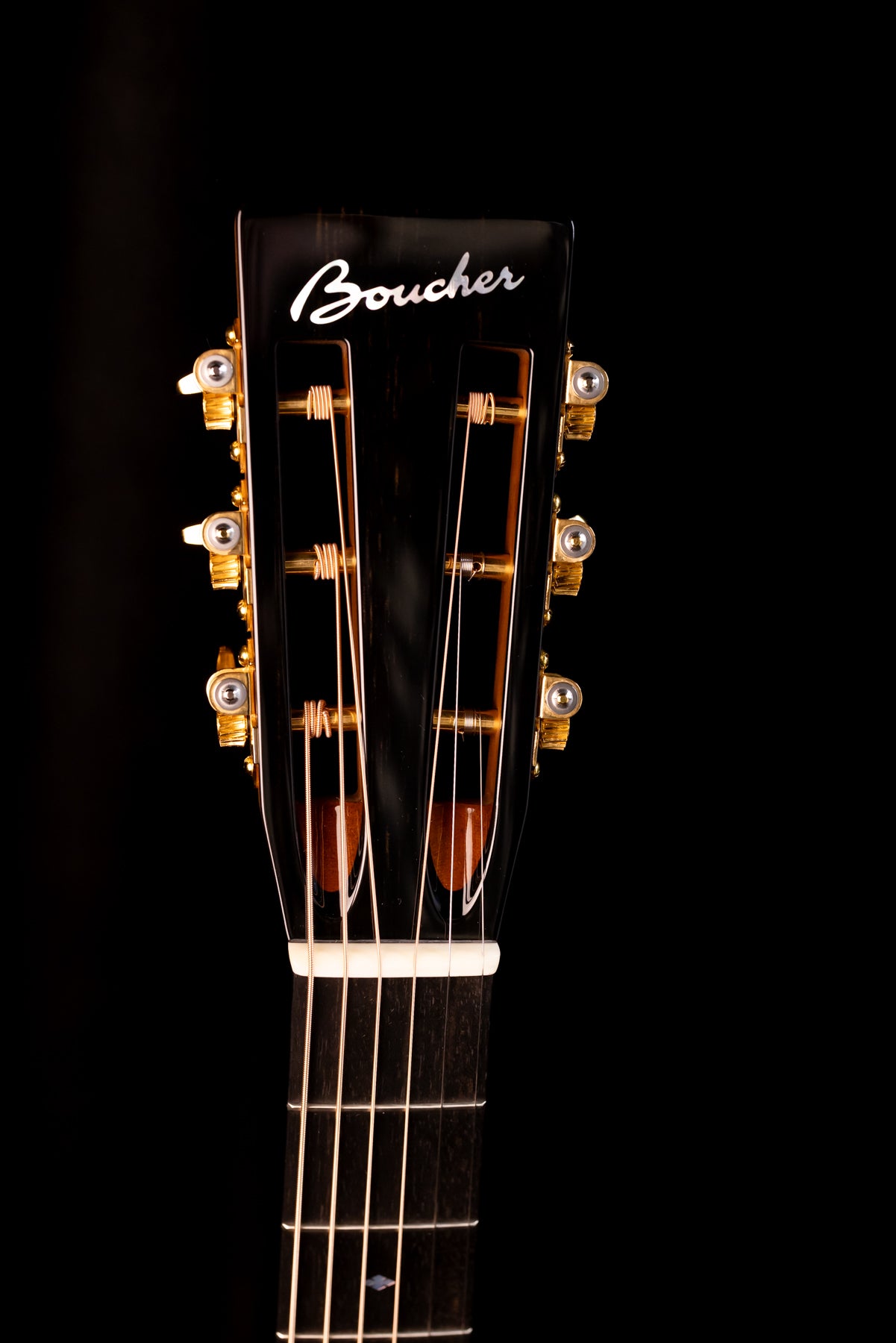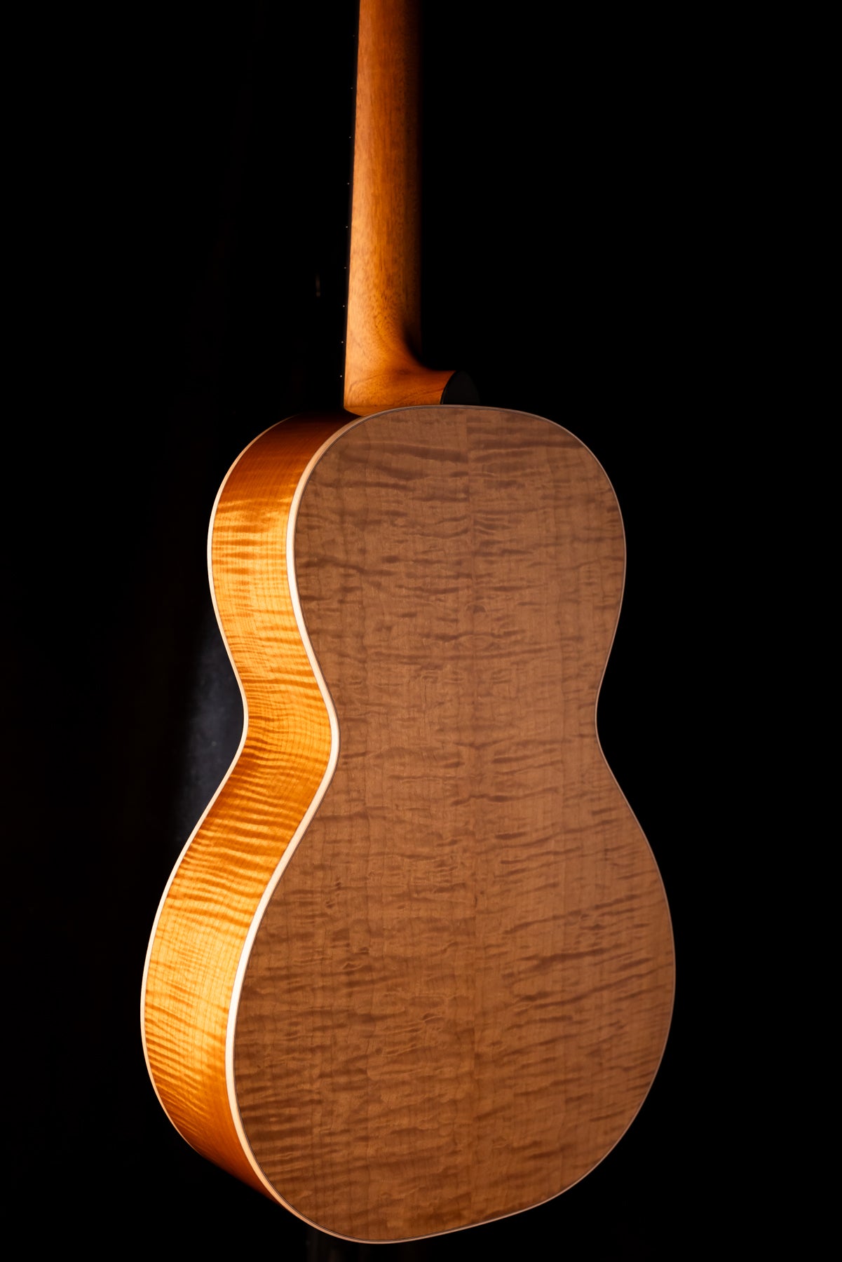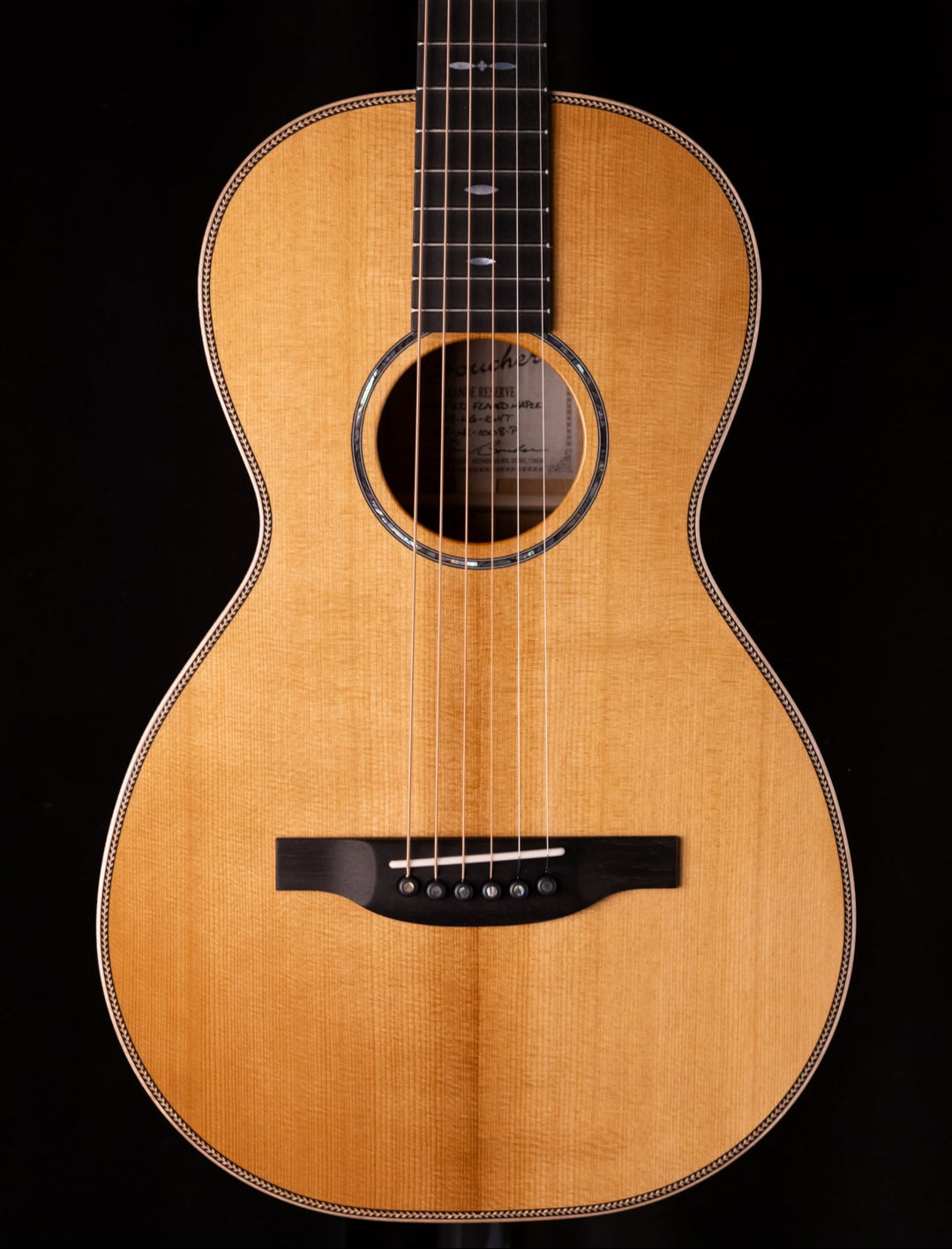 Boucher GR-HG-164T Grand Reserve Parlor Adirondack/ Torrefied Maple. If you're looking for the perfect parlor guitar, look no further. Rich, focused mids with projection and resonance that would make a dreadnaught blush. Gorgeous 4A adirondack spruce top that sounds as good as it looks. The torrefied maple brings out more of the lower end and low mids in the maple, so it doesn't have too much bite like maple sometimes does. Be sure to check out our demonstration video on Youtube with Buffalo's own Doug Yeomans.