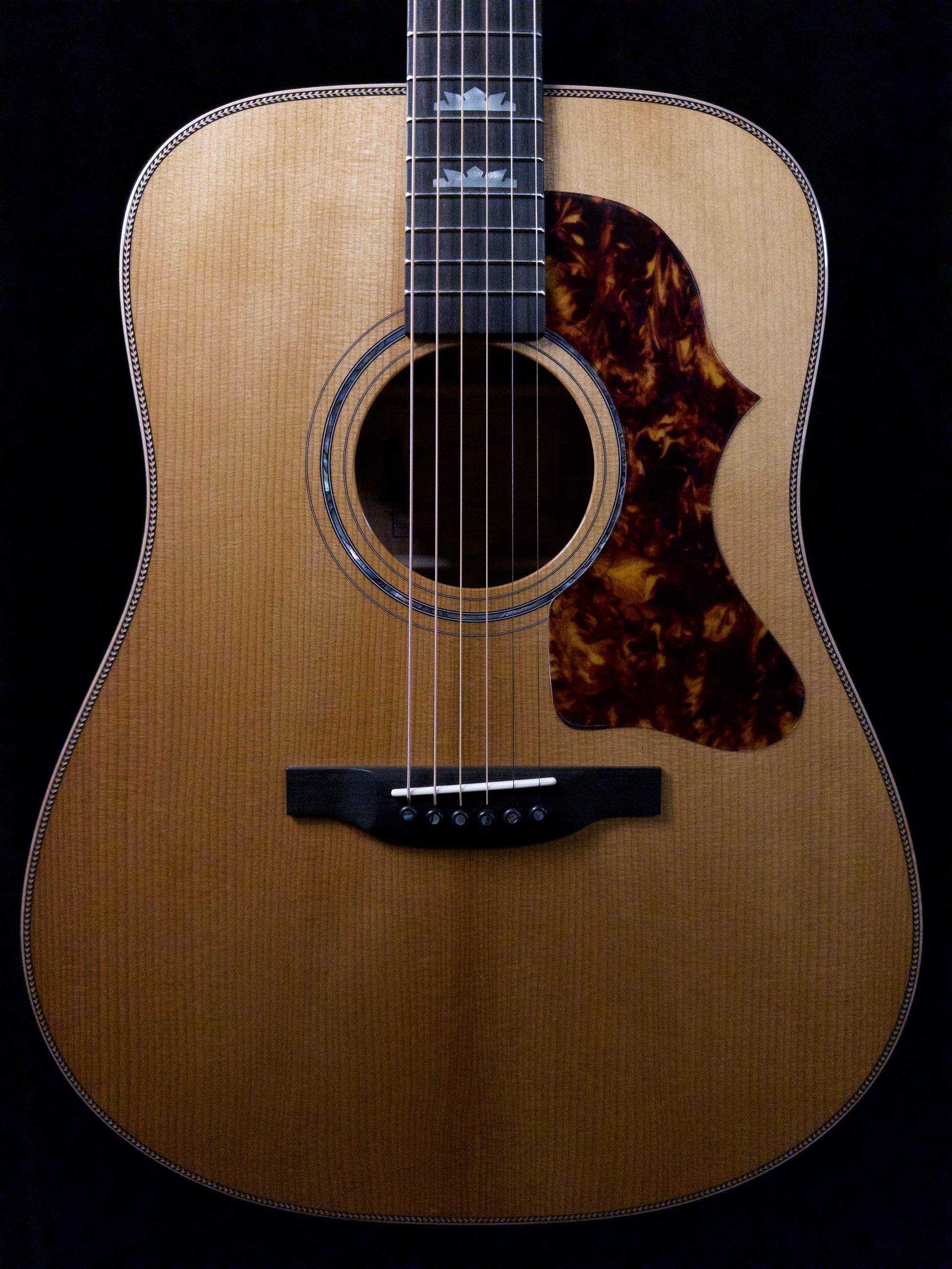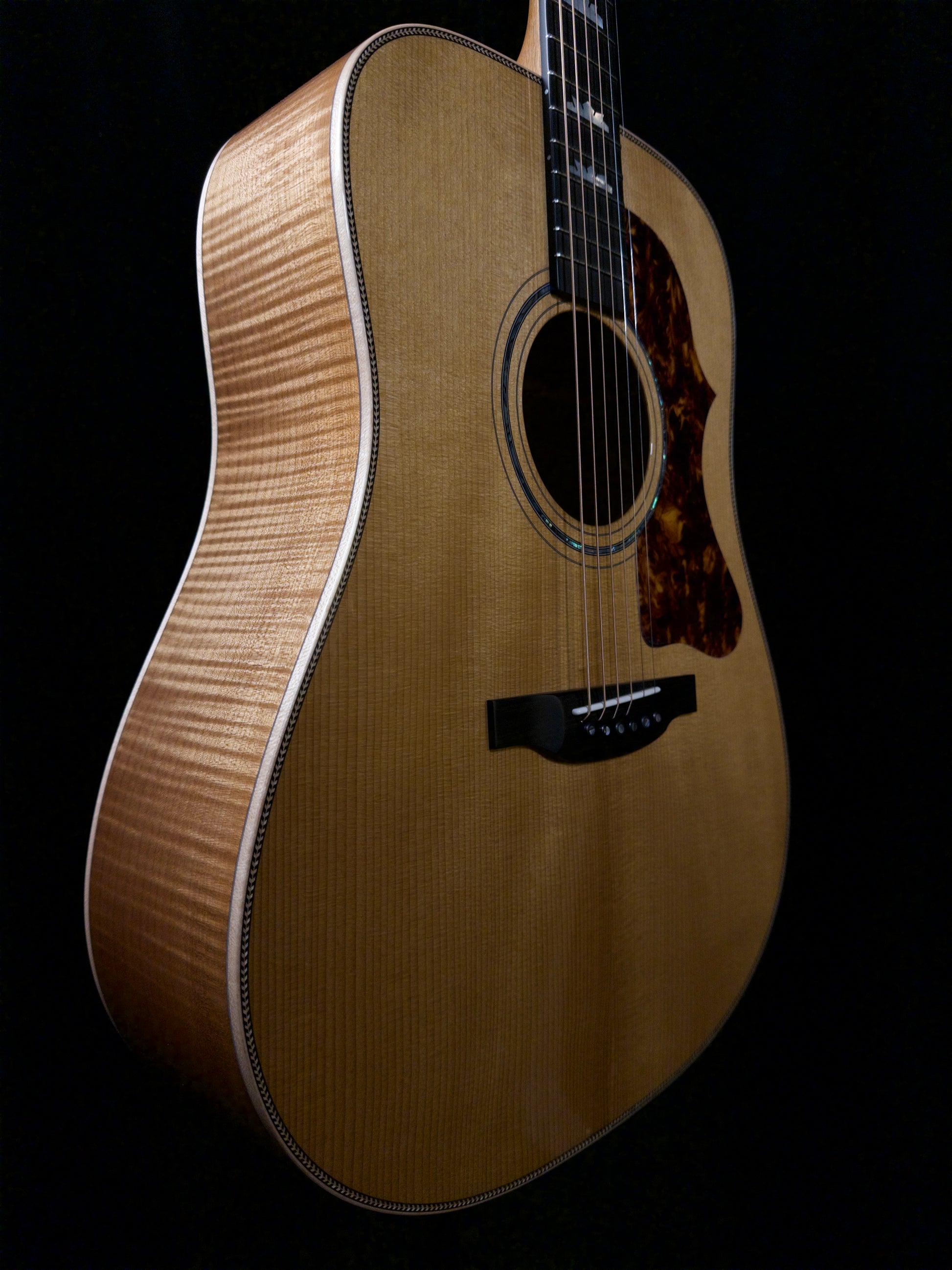 Boucher 'Grand Reserve' Studio Goose model GR-SG-162-T - wow! The most powerful guitar in the shop! Boucher has developed a special mold that has enabled them to master the skill of bending torrified Maple without breaking it. Truth be told, this guitar does not sound like you would expect a Maple guitar to sound! Check out the demonstration video thanks to our good friend Doug Yeomans - and you'll hear (and see) what we mean!
