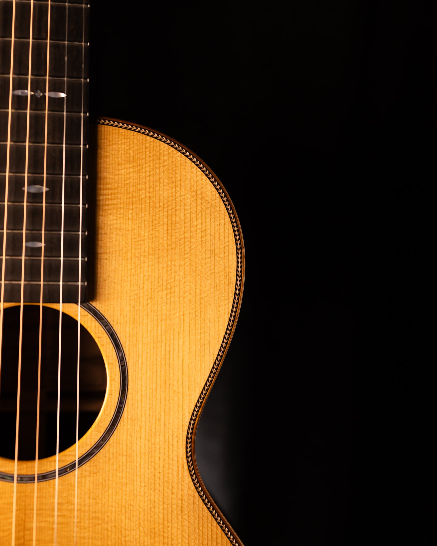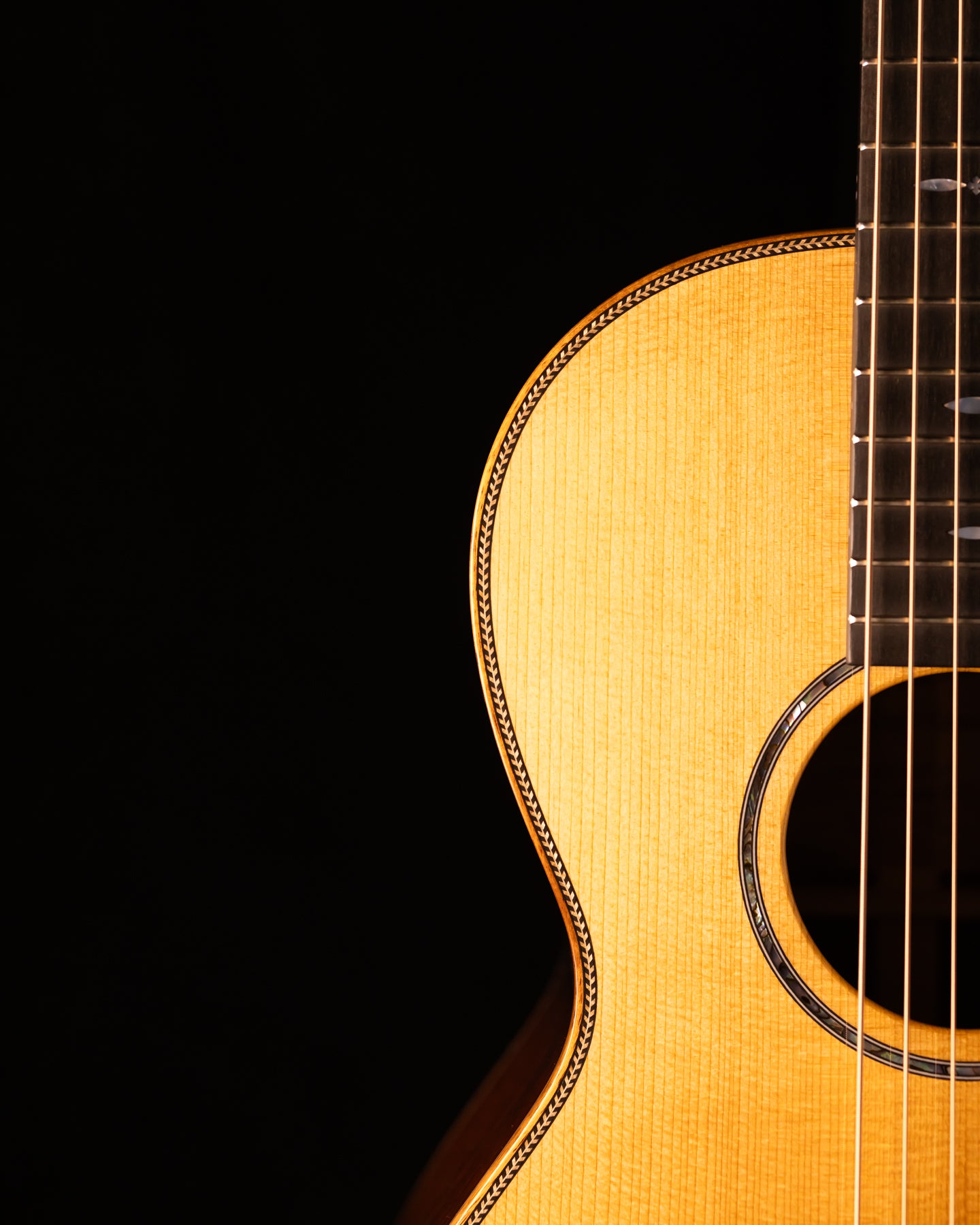 Boasting a gorgeous Master Grade torrefied Adirondack red spruce top and rich East Indian Rosewood sides and back, this delightful parlor guitar comes alive when fingerpicked. The sound is intimate without being small or boxy. Could be your new couch buddy!