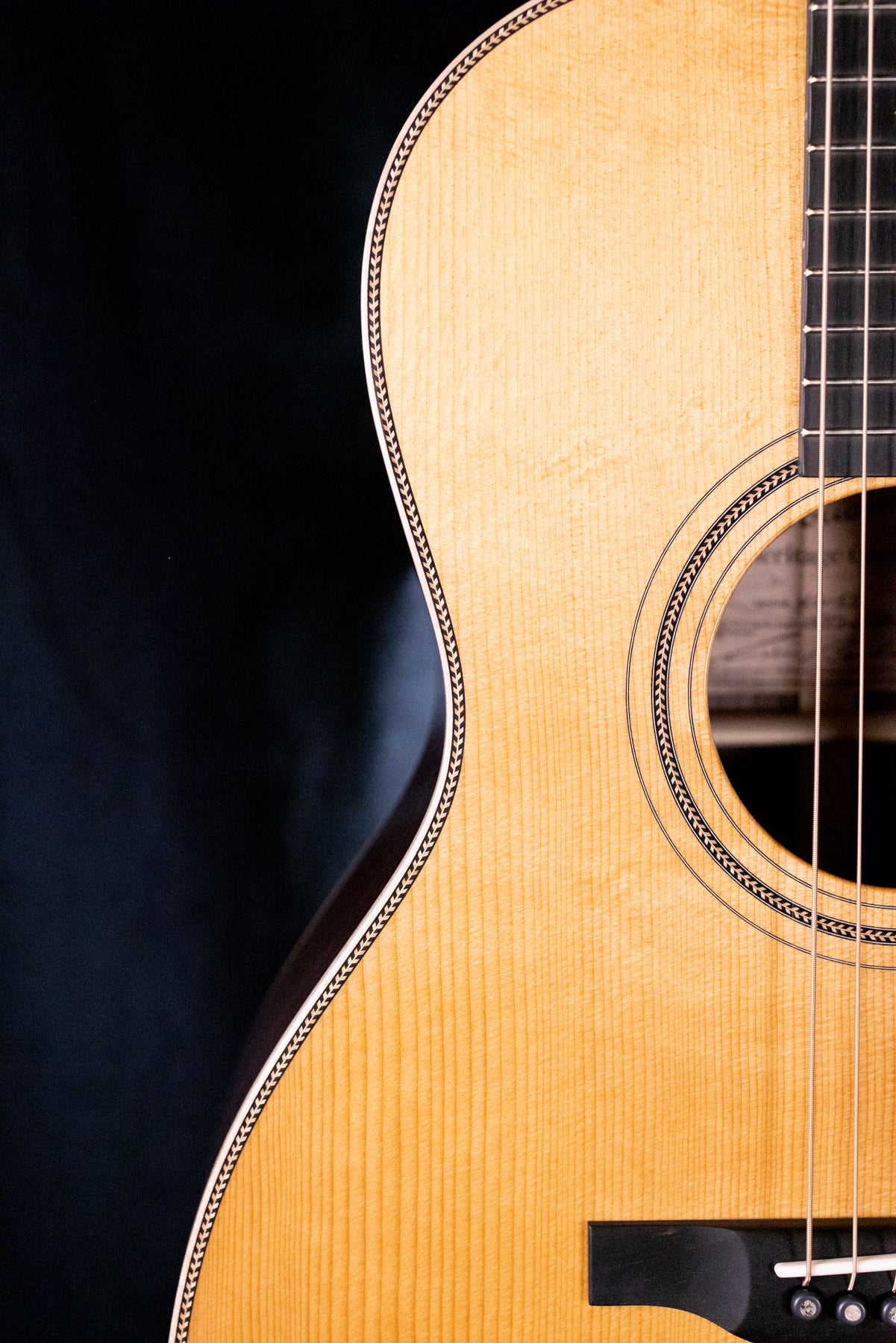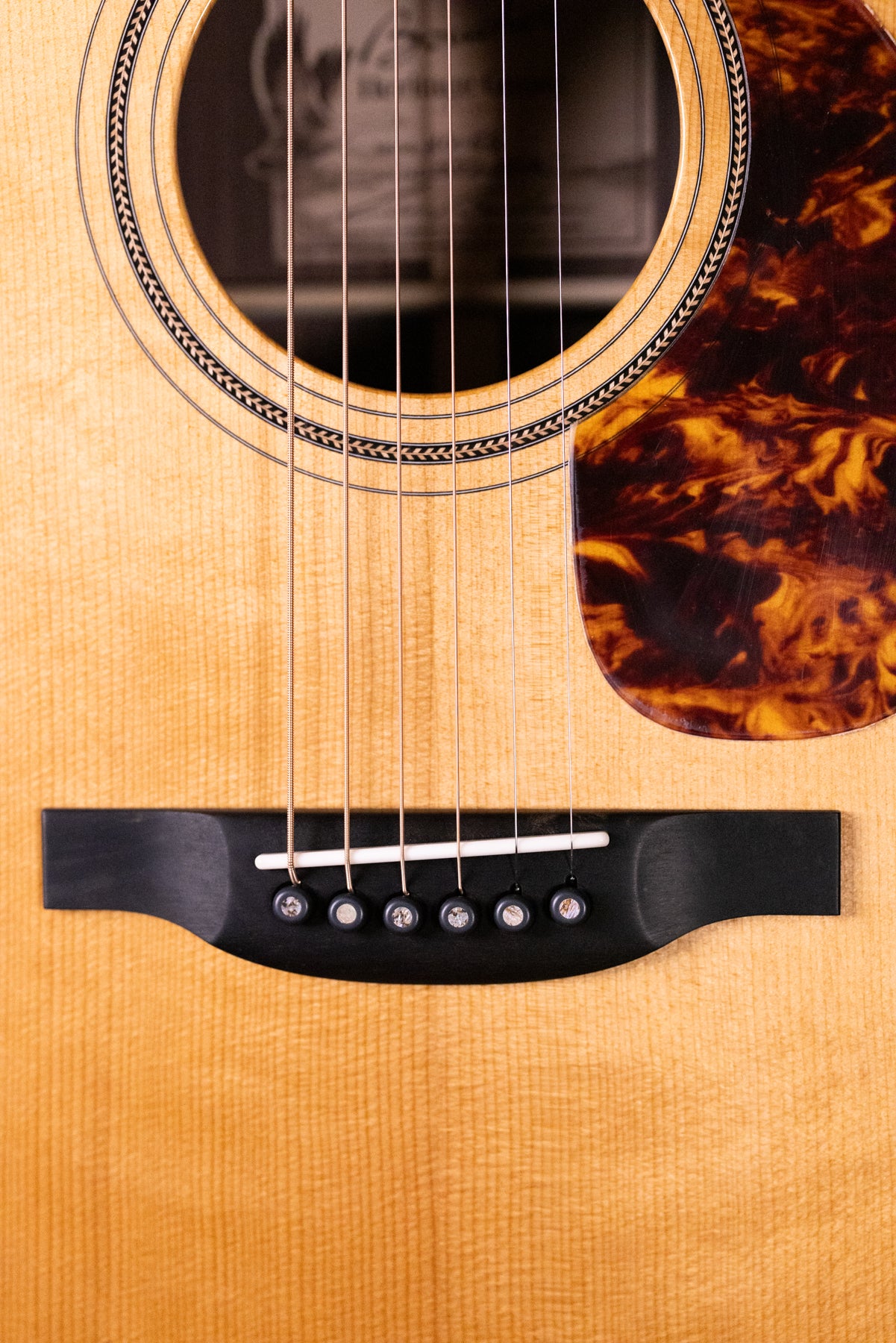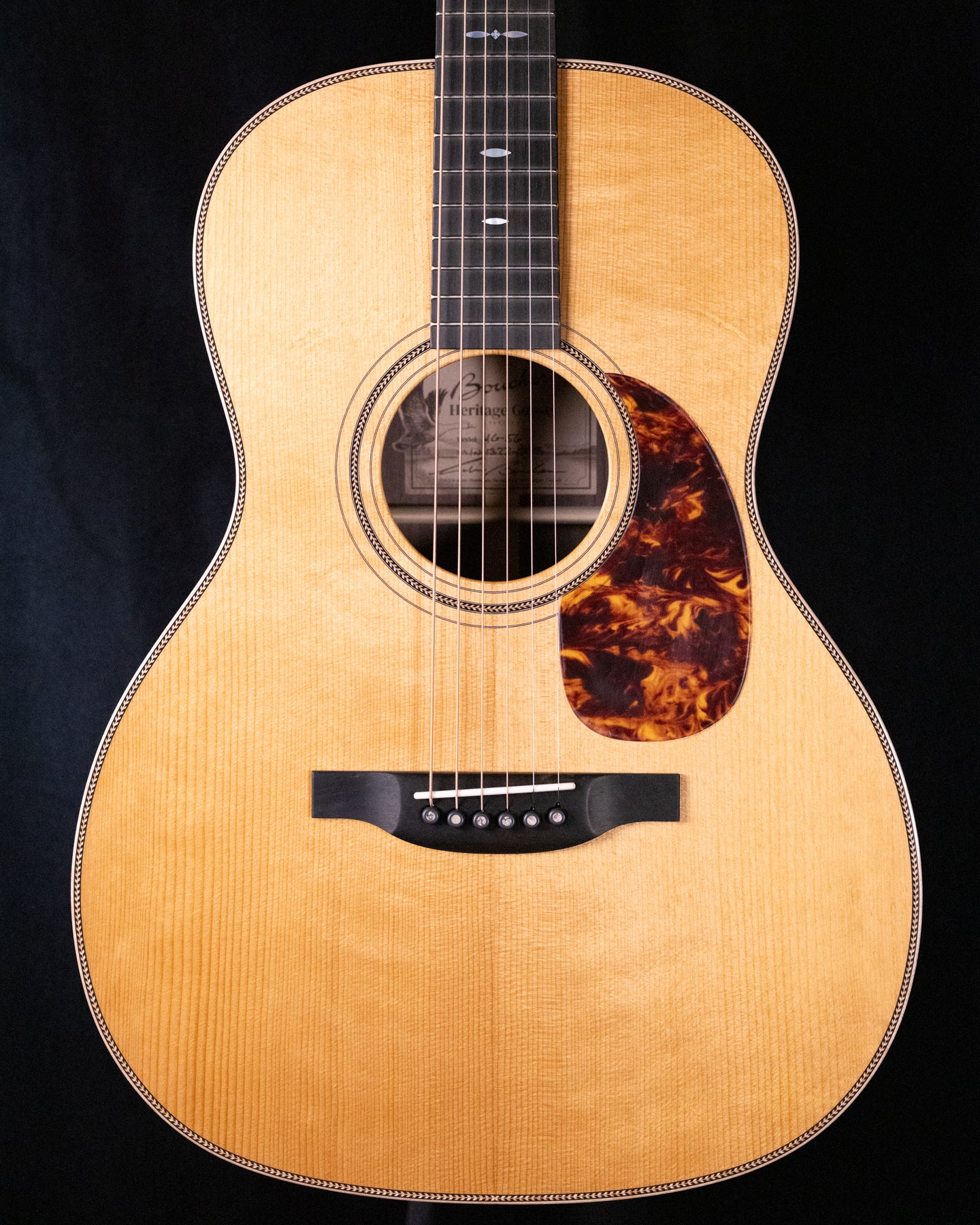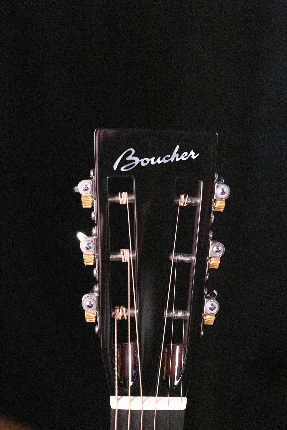 Here's Boucher's popular powerhouse 12 fret guitar, the Heritage Goose HG 56! It delivers mids and bass depth while fingerpicking, even when capoed at the 7th fret! While an excellent choice guitar for finger style players, it's no slouch when it comes to flat picking!