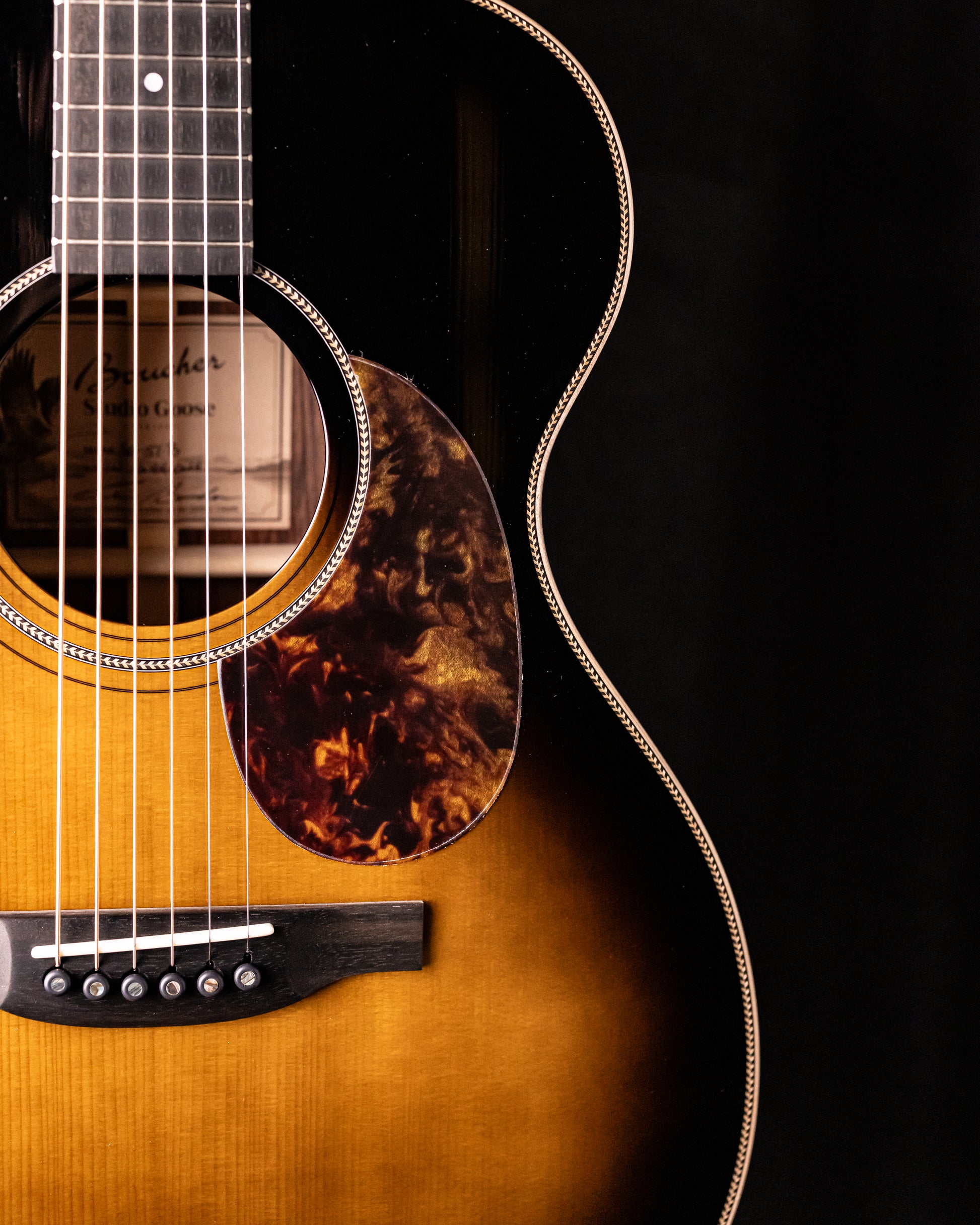 Each Adirondack red spruce soundboard of the Studio Goose is personally selected by Robin Boucher with his commitment to provide the wood qualities needed to deliver high end sound.