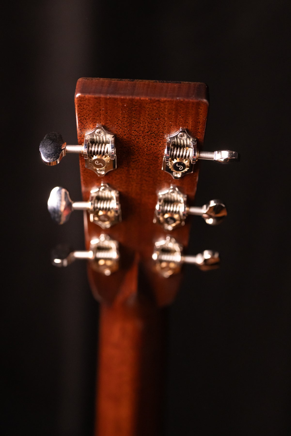 AAAA Sitka Spruce soundboard; Mahogany back and side set; Ebony fretboard and bridge; Faux Tortoise binding and pick guard; Tuners are Waverly nickel ovals;