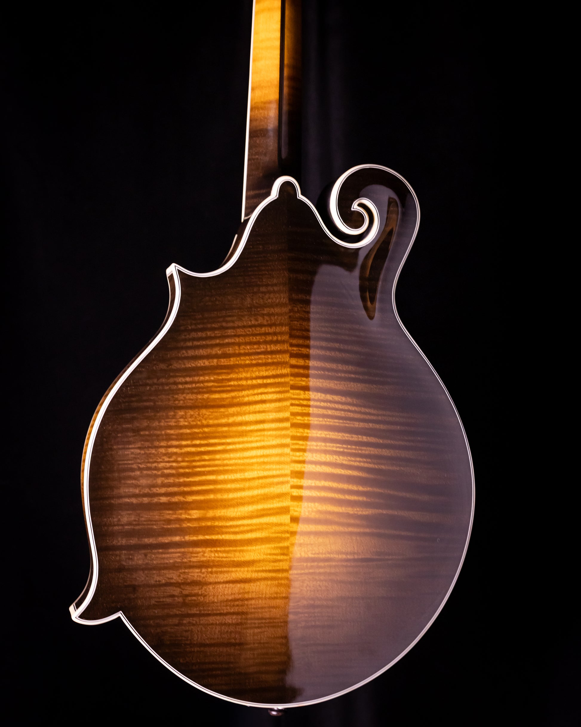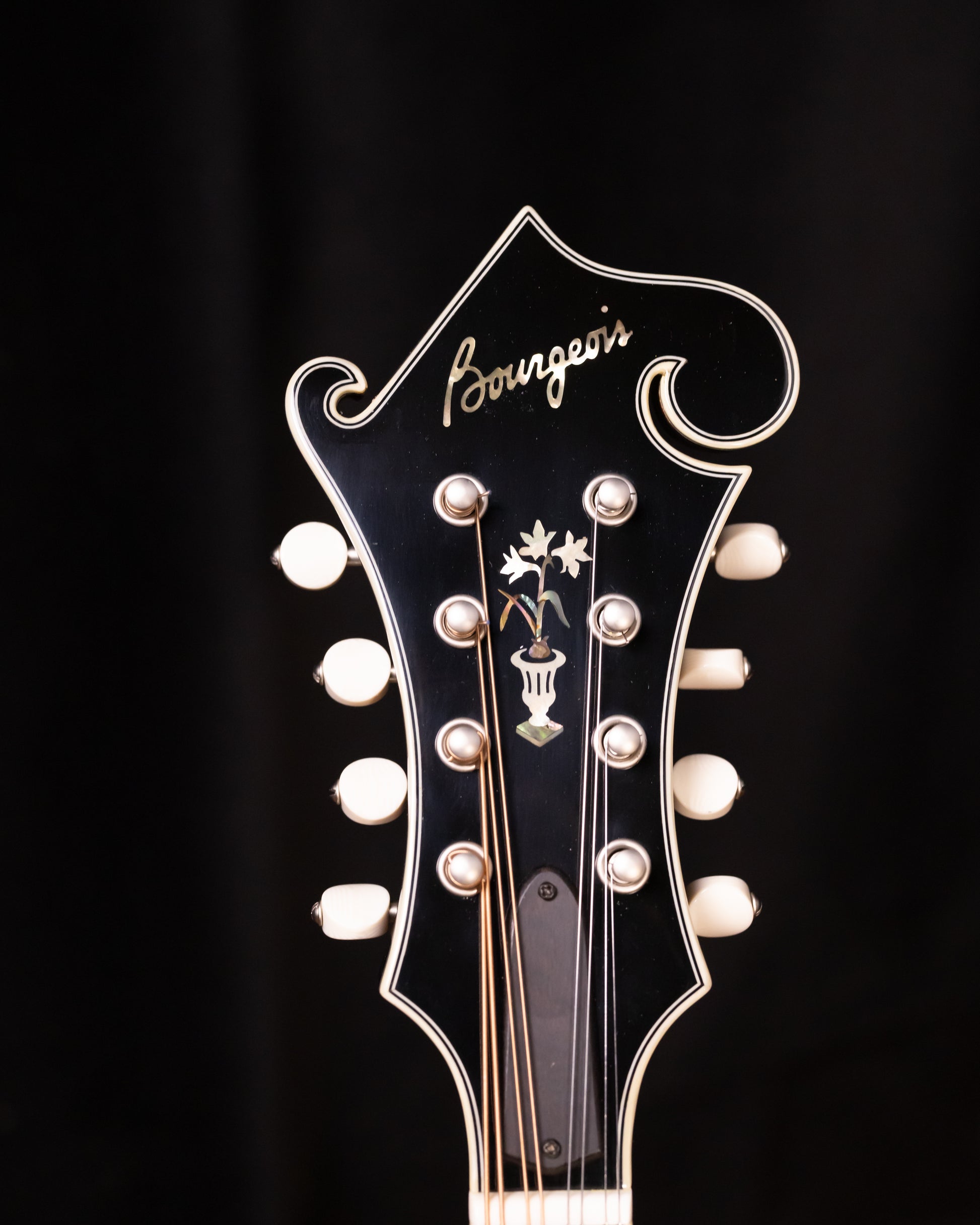The Bourgeois M5F-SB is a product of the collaboration between Bourgeois and Eastman Music. Eastman is known for high quality hand carved violin and arched top guitar soundboards, and this instrument is a testimony! Completely designed by Dana Bourgeois and built to his specs, it features a slightly wider neck and a radiused fretboard on a neck with a more pronounced V shape than many other mandolins - particularly Eastman's own highly acclaimed mandolins.