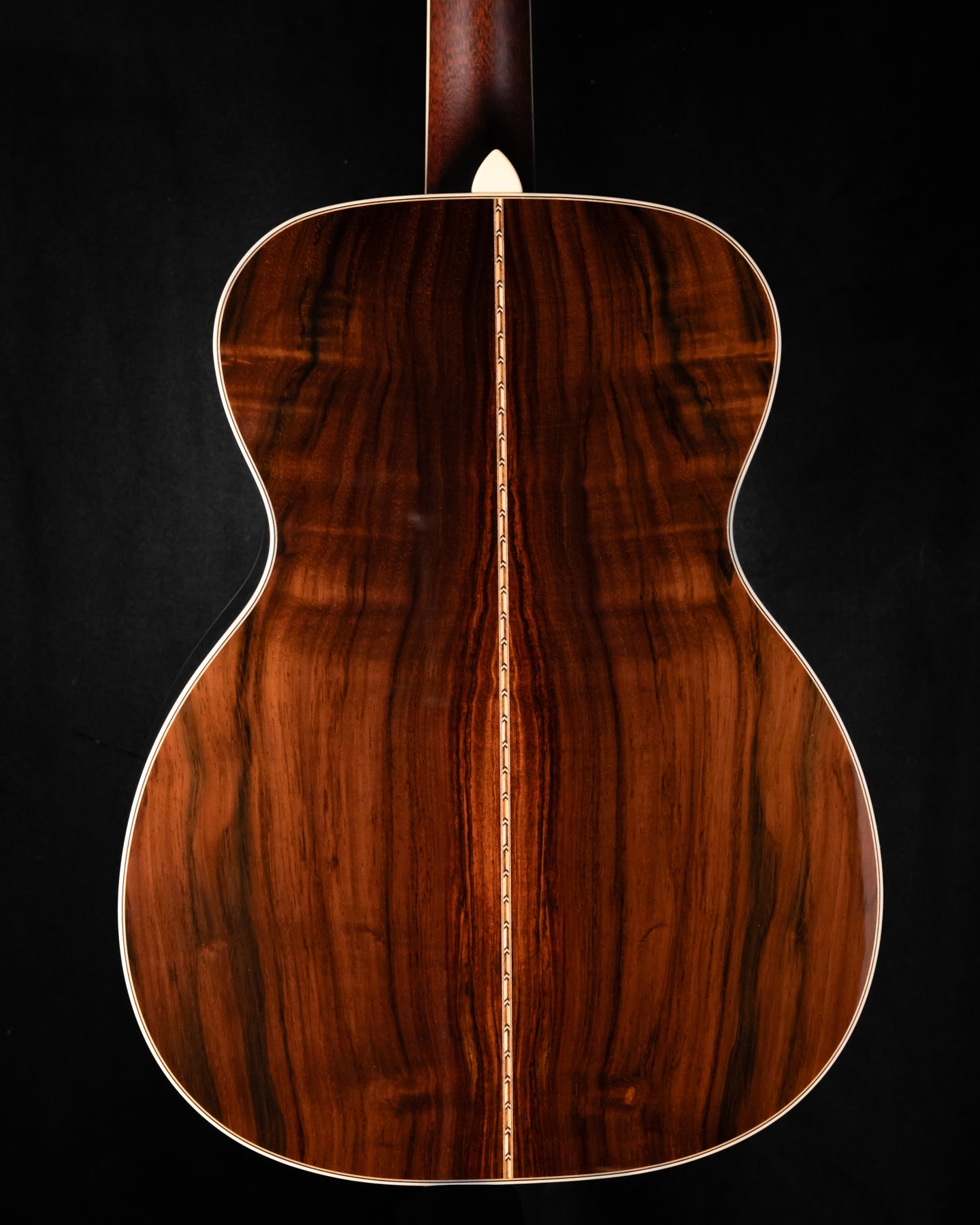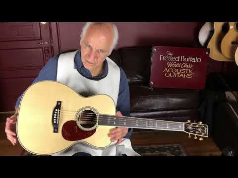 A few special features on this guitar: the tuners are Engraved Waverly Gold. Bridge and End pins are Antique Walrus with Black Dots. Hide glue construction. And you can't miss the Floral Inlay on the headstock as well as the Bourgeois Snowflake fretboard inlays!