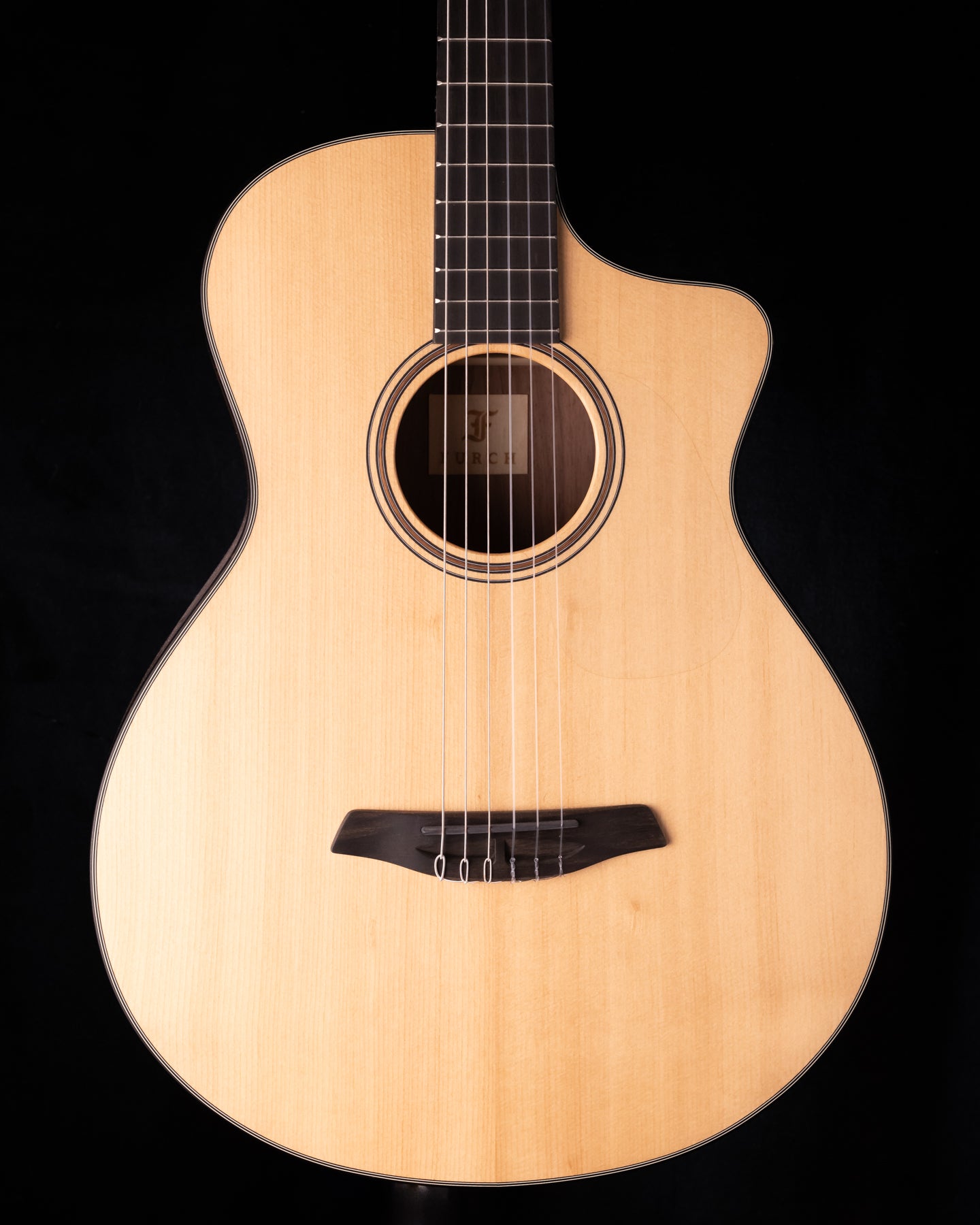 Brand new Furch nylon stringed 'hybrid' style guitar, model GNc2-SW Grand Nylon cutaway, with a Sitka Spruce soundboard and a stunning set of Walnut for the back and sides. You can get the feel and sound of a classical guitar but with the narrower 1-3/4" nut width! Comes with high quality, Furch branded gig bag!