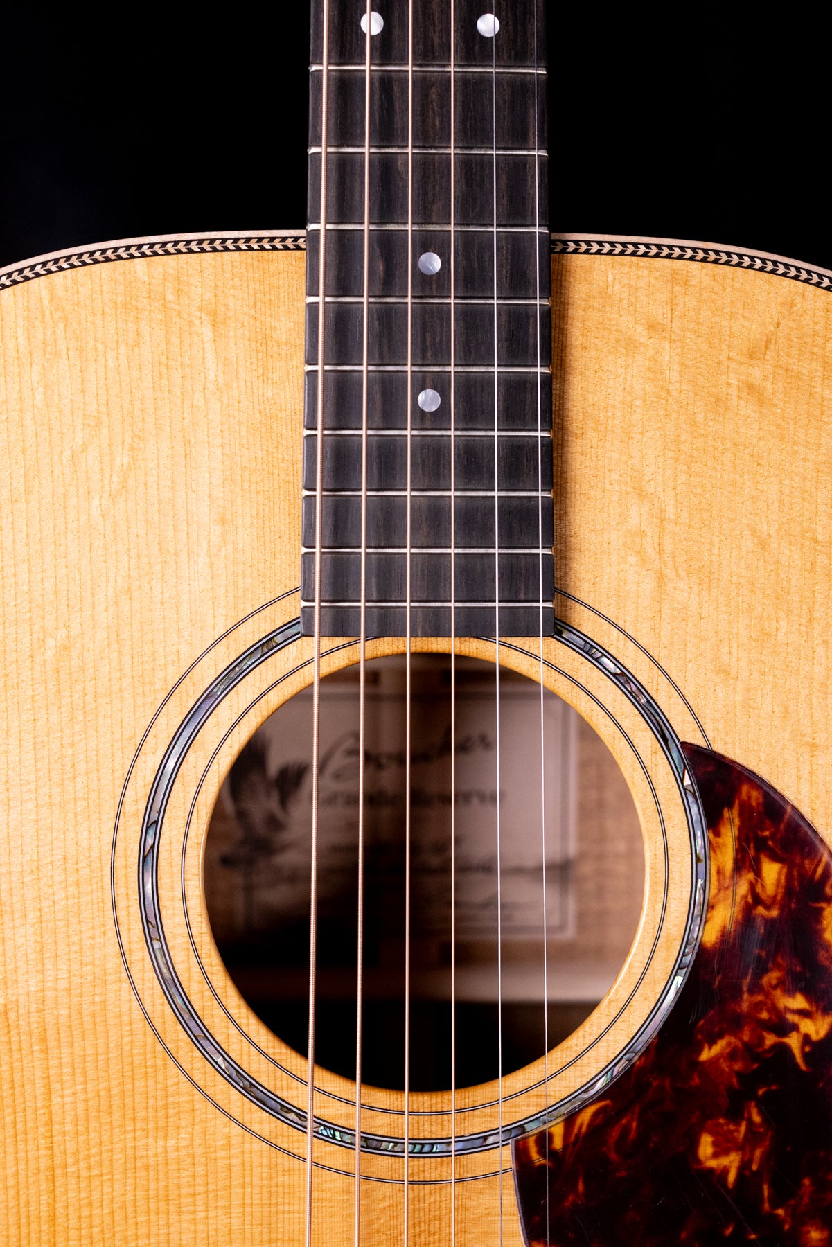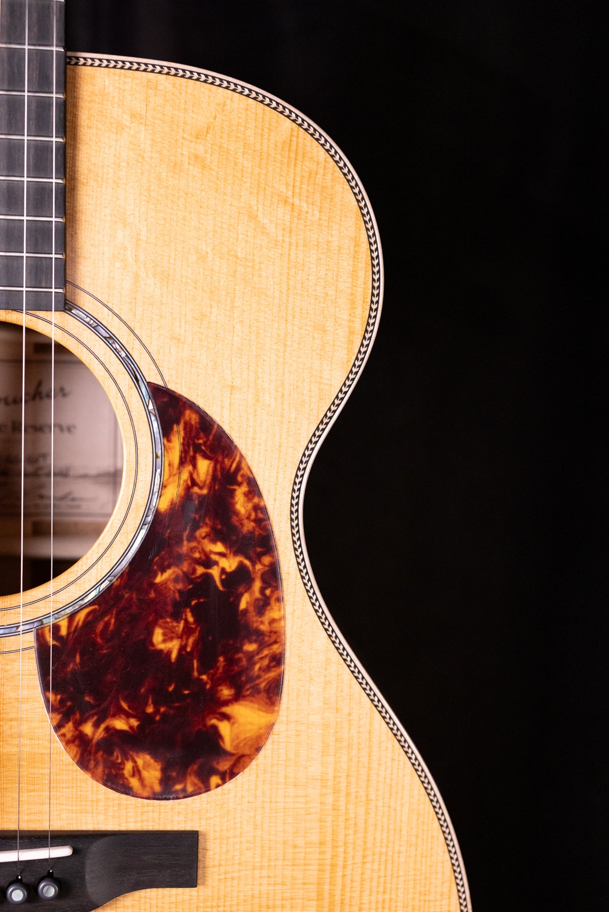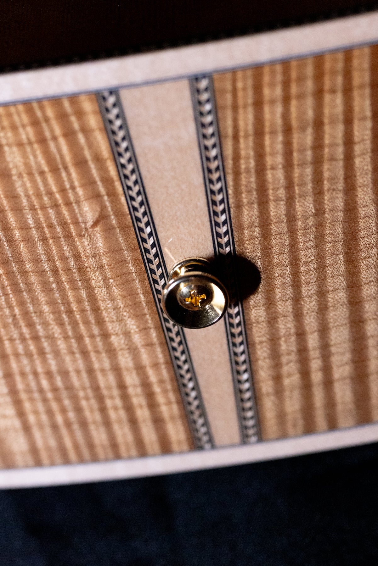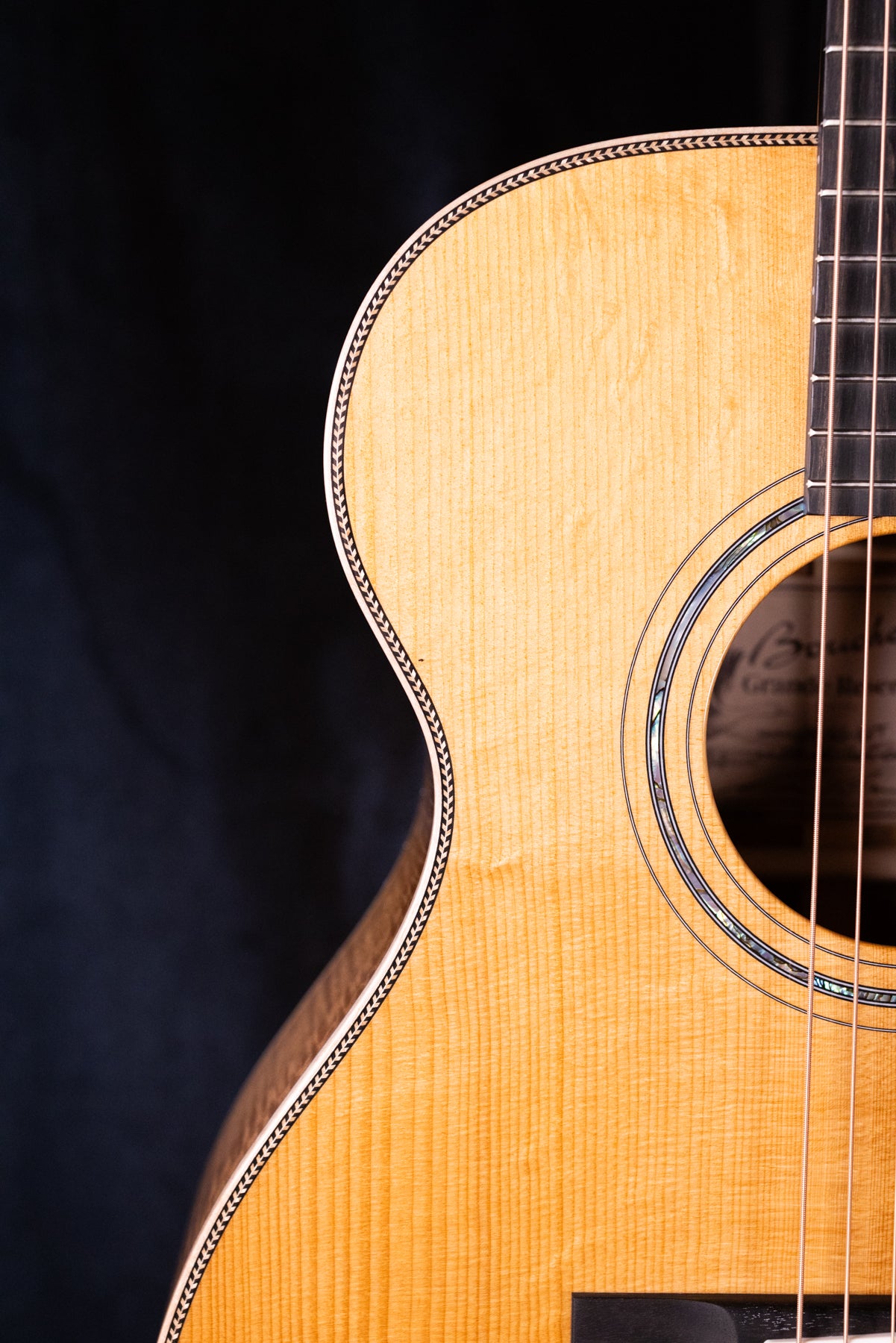 - Body Binding: Maple with herringbone purfling at the body edge and 3-ply (Black/White/Black) purfling at the sides.