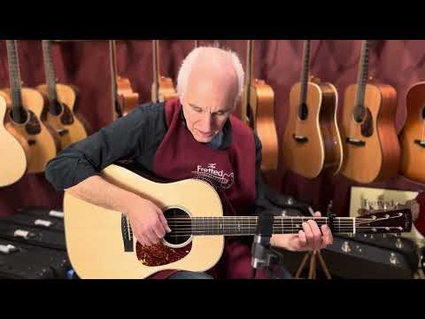 Built with Huss & Dalton's radius top to bring out the mid-range. They accomplish this by sanding an arch into the bracing and preparing the guitars sides with a matching radius to accept the soundboard. This approach also increases the load bearing capacity of the soundboard.