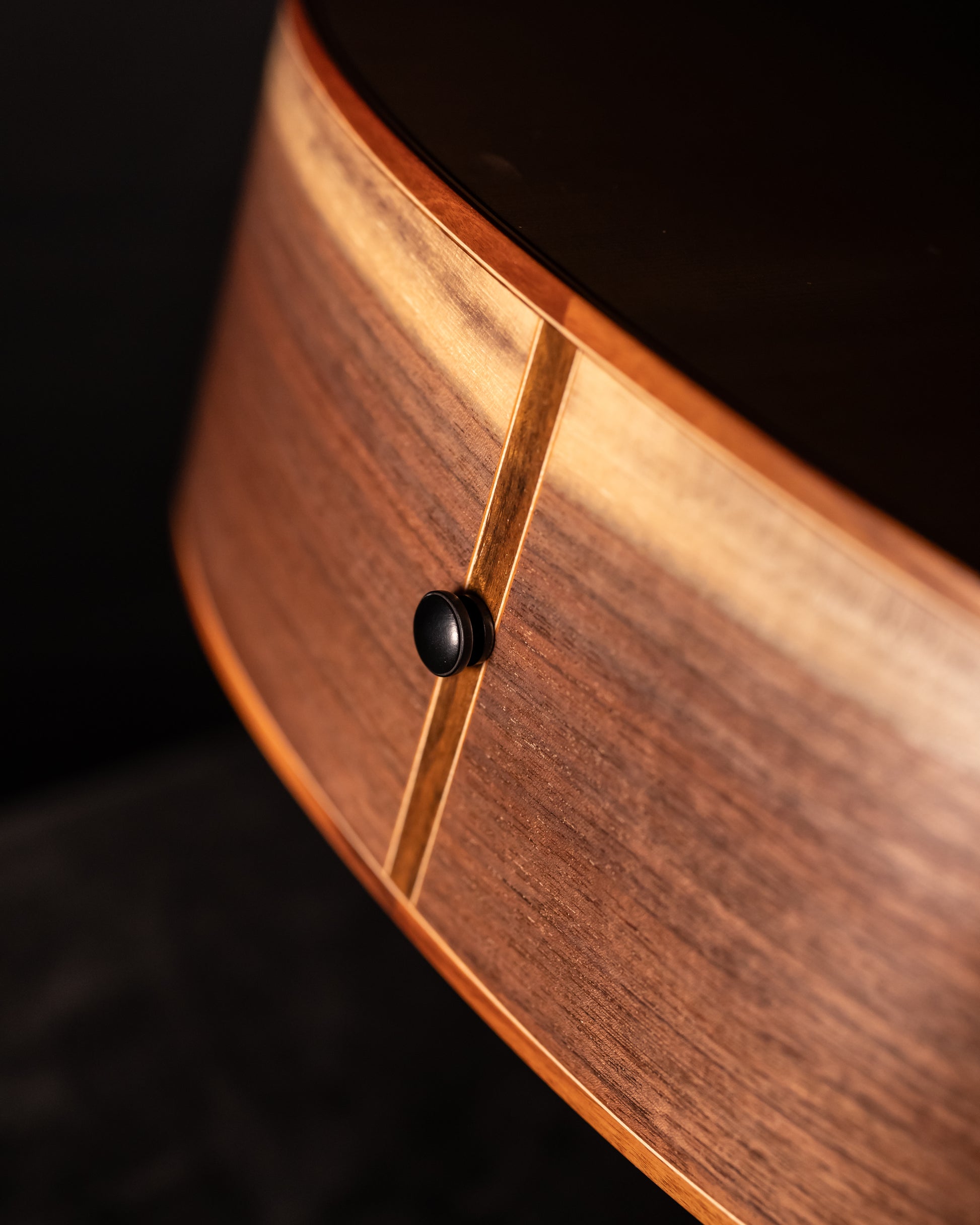 This year, Dermot celebrates 25 years with a special series of his most popular model, the A25 Cedar / Walnut. The anniversary model has a few special features, including the special set of English Black Walnut, the Celtic Knot at the 12th fret, the Ebony head plate and back plate, the Ebony binding, Cosmo Black Gotoh 510 tuners, and the special anniversary label.