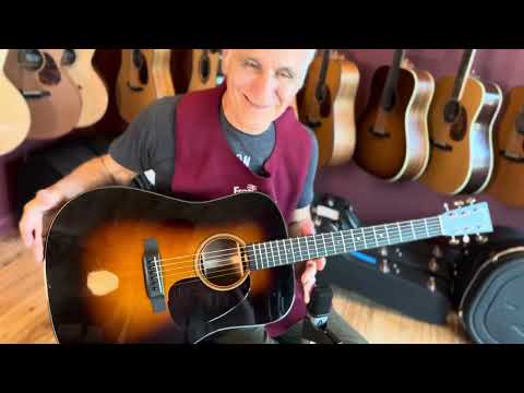 This previously loved Custom Shop D-18 is a classic with a twist. Featuring a tobacco sunburst and a beautiful set of sinker mahogany, this "18" is set up and ready to take to your nearest bluegrass jam. This is a players instrument and shows signs of wear, mostly as surface scratches. One little ding in the top, but nothing through the finish. Standard specs-1 3/4" long scale. Open back Grover tuners. Great tone, versatility, and looks for the price! Comes with an original Martin case. Please check out our demonstration video with Buffalo's own Doug Yeomans!